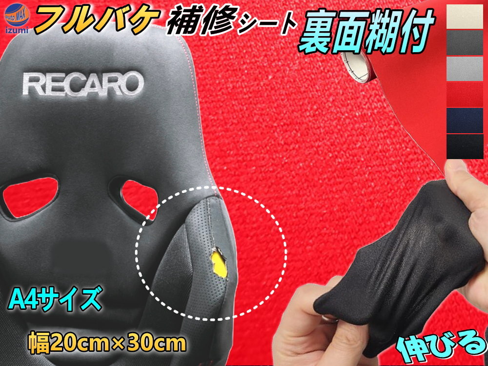 - フルバケ補修用シート (A4) 赤 20cm×30cm 裏面糊付き バケットシート フルバケットシート セミバケット セミバケ 0