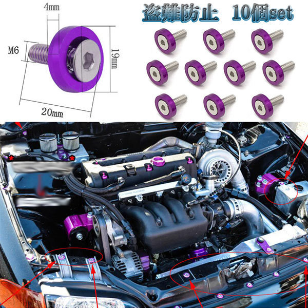 > ナンバー フェンダー ボルト JDM 盗難防止 M6 ボルト アルミ カラーワッシャー ボルトリング パープル 10個set 車 汎用 外装 ドレスアップ