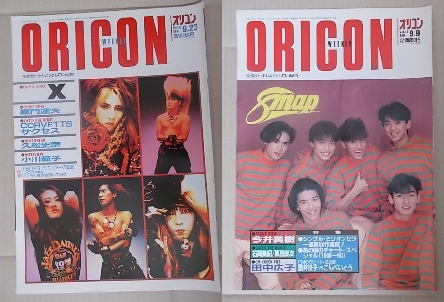 > ORICON オリコン 1991年9月 X 嘉門達夫 田中律子 久松史奈 小川範子 SMAP 今井美樹 松野有里巳(ribbon)石岡美記 栗原良次 田中広子