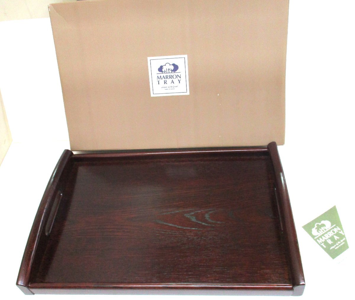 - お盆 長手盆 木製トレー 持手付 くさ忠 MARRON TRAY マロントレーM 縦47.5x奥行き31.5x高さ6cm 箱/栞付 未使用 101448 ★