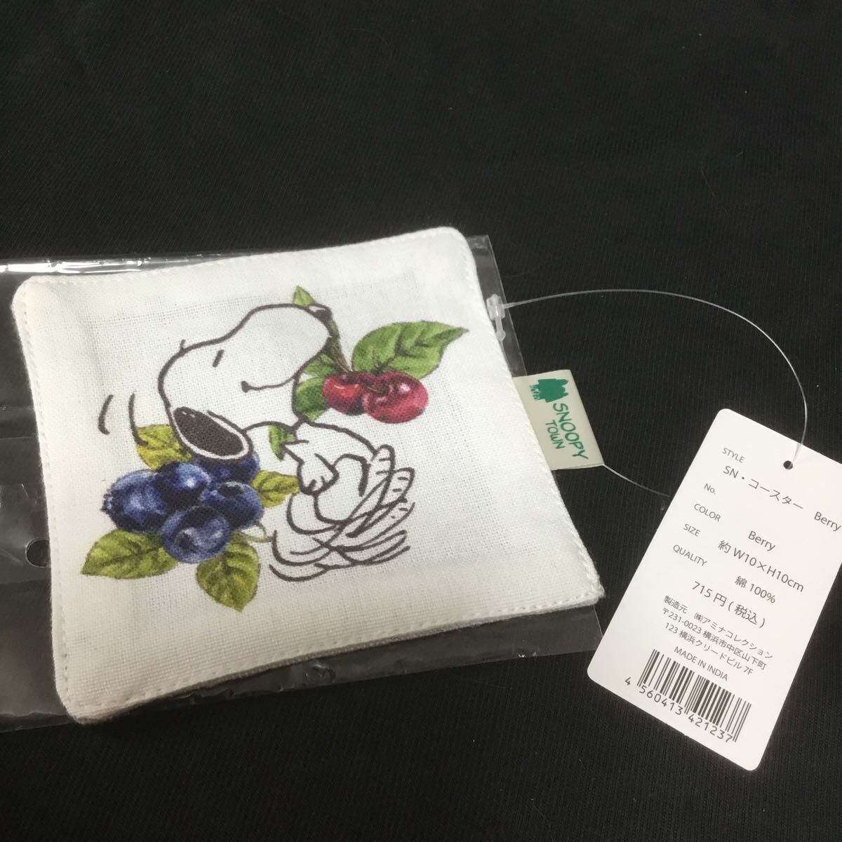 - SNOOPY TOWN フルーツ柄布製コースター さくらんぼブルーベリー スヌーピー