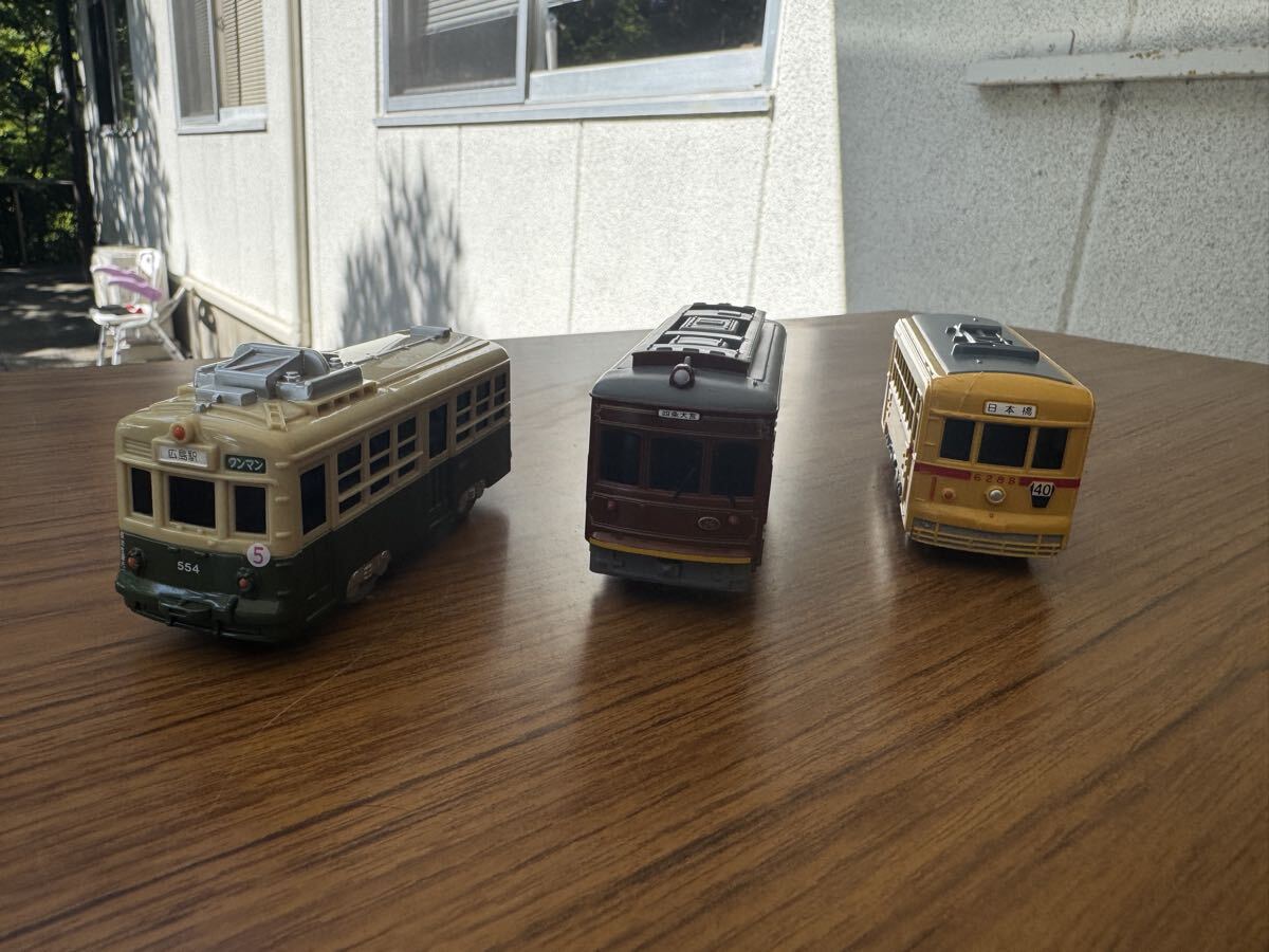 - 路面電車他3両セット 日本橋、広島駅、四条大宮動力はプルバック 可動確認済み