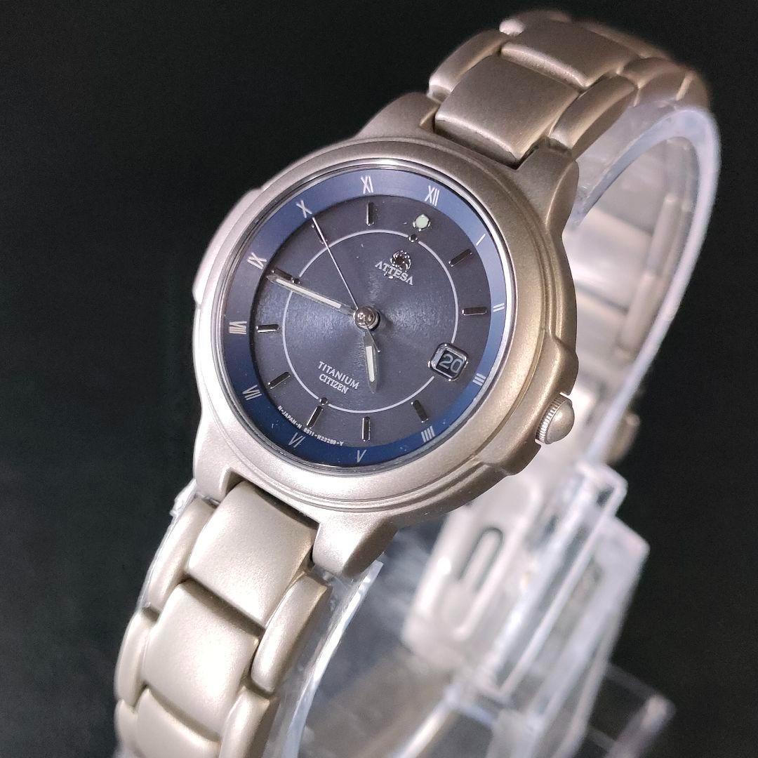 - 美品 CITIZEN シチズン アテッサ ネイビー シルバー ソーラー 腕時計