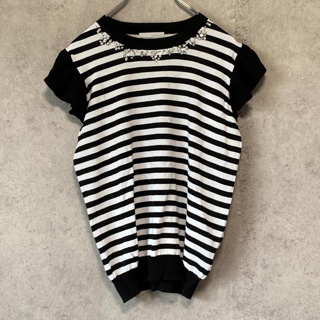 - OPAQUE.CLIP(M)サマーニット*ビジュー*ボーダー*袖フリル