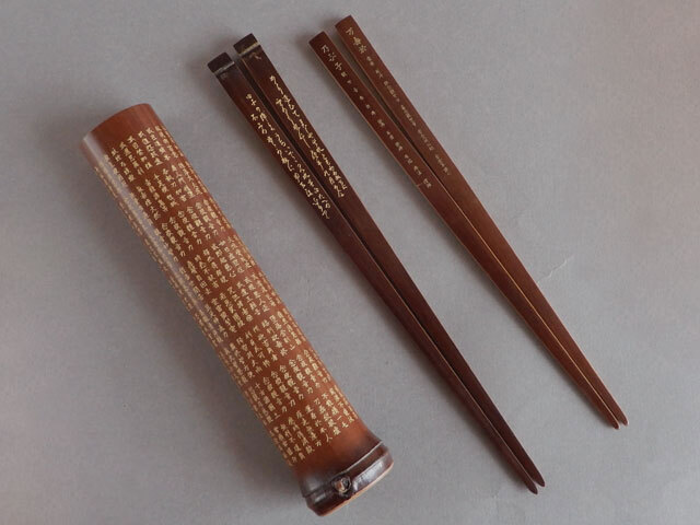 - 近藤 万寿於刻 煤竹 菓子箸 二善 金彩 妙法蓮経観世音菩薩