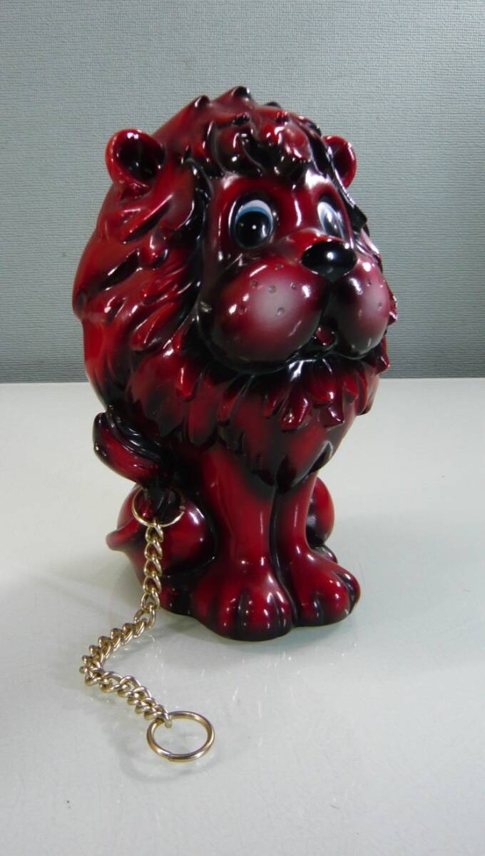 - 昭和レトロアンティーク ライオン 陶器 貯金箱 置物 赤 当時物 中古