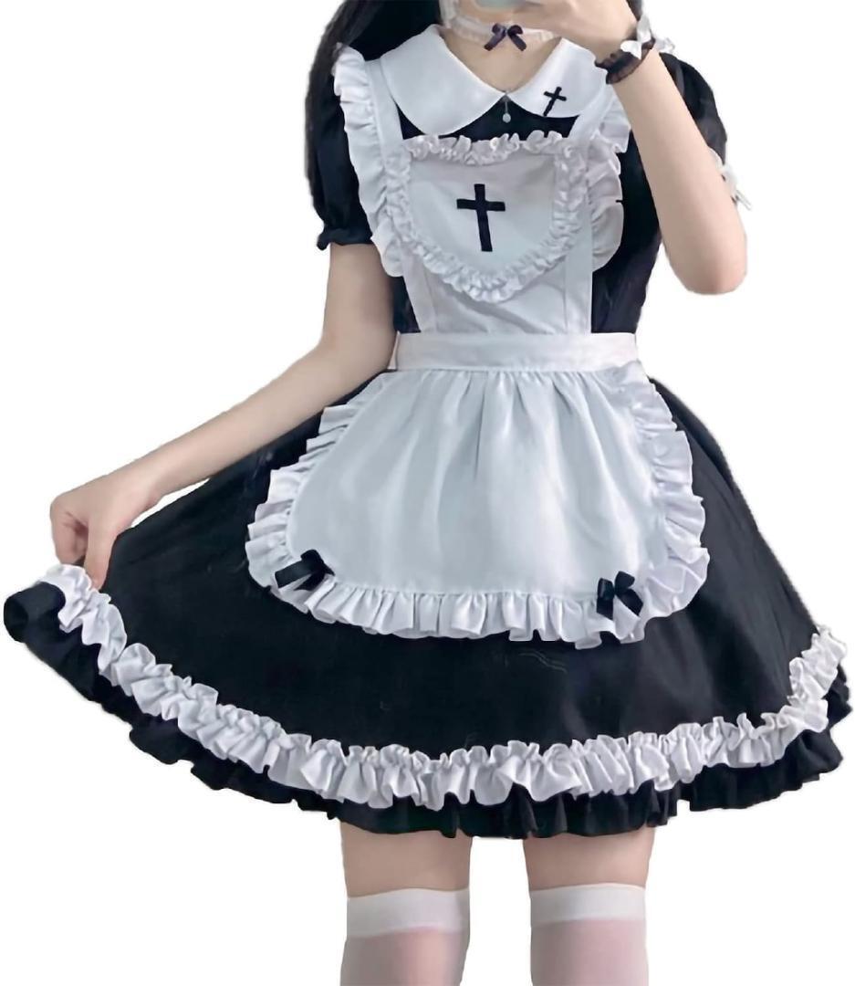 - コスプレ メイド服 衣装 半袖 黒 仮装 ブレスレット ネック2種付き【L】