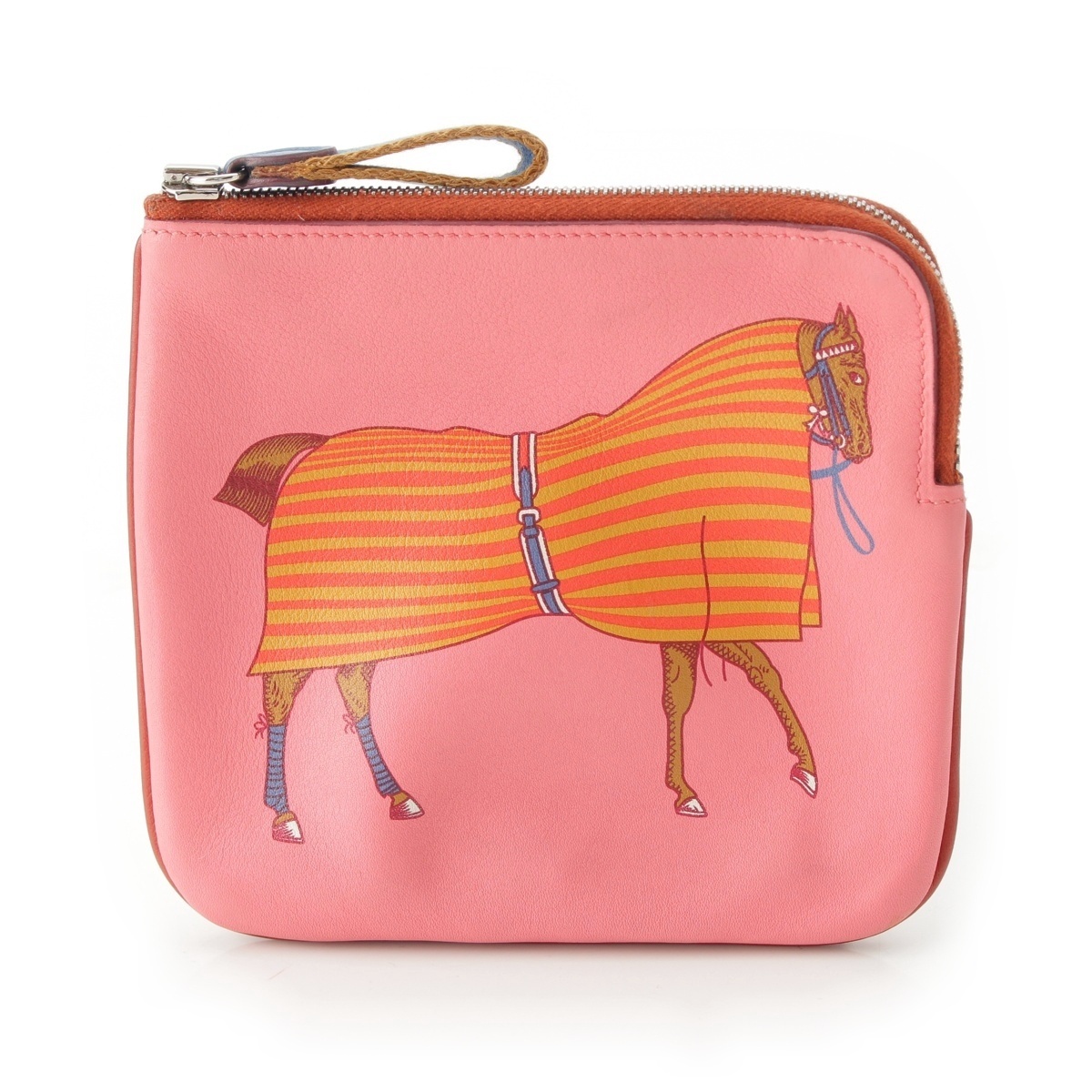 - エルメス カレポケット ヴォースイフト レザー ホース 馬 ストライプ柄 ポーチ ピンク【中古】