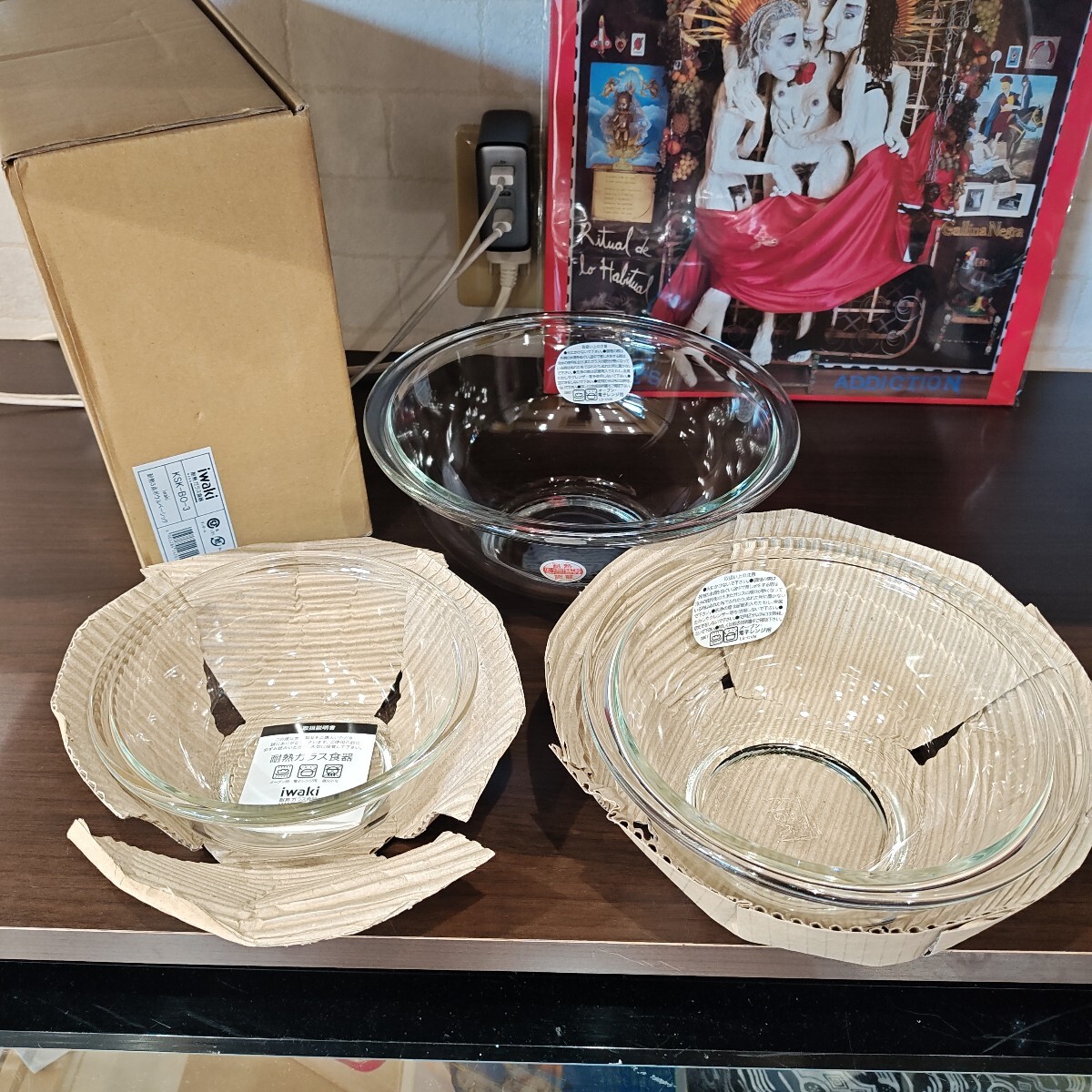 - 90713 日本古風堂 四角いボウル 耐熱皿 岩城硝子 耐熱 3点ボール ベーシック