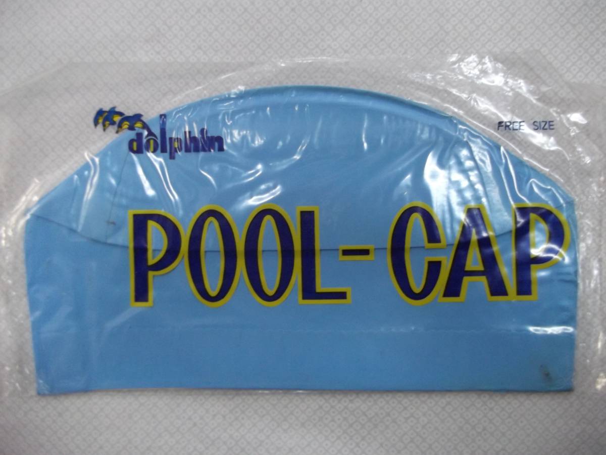- 【ジャンク品】dolphin POOL-CAP FREE SIZE 青【ドルフィンのゴム水泳帽子.TOKYO HIRANO レトロ】