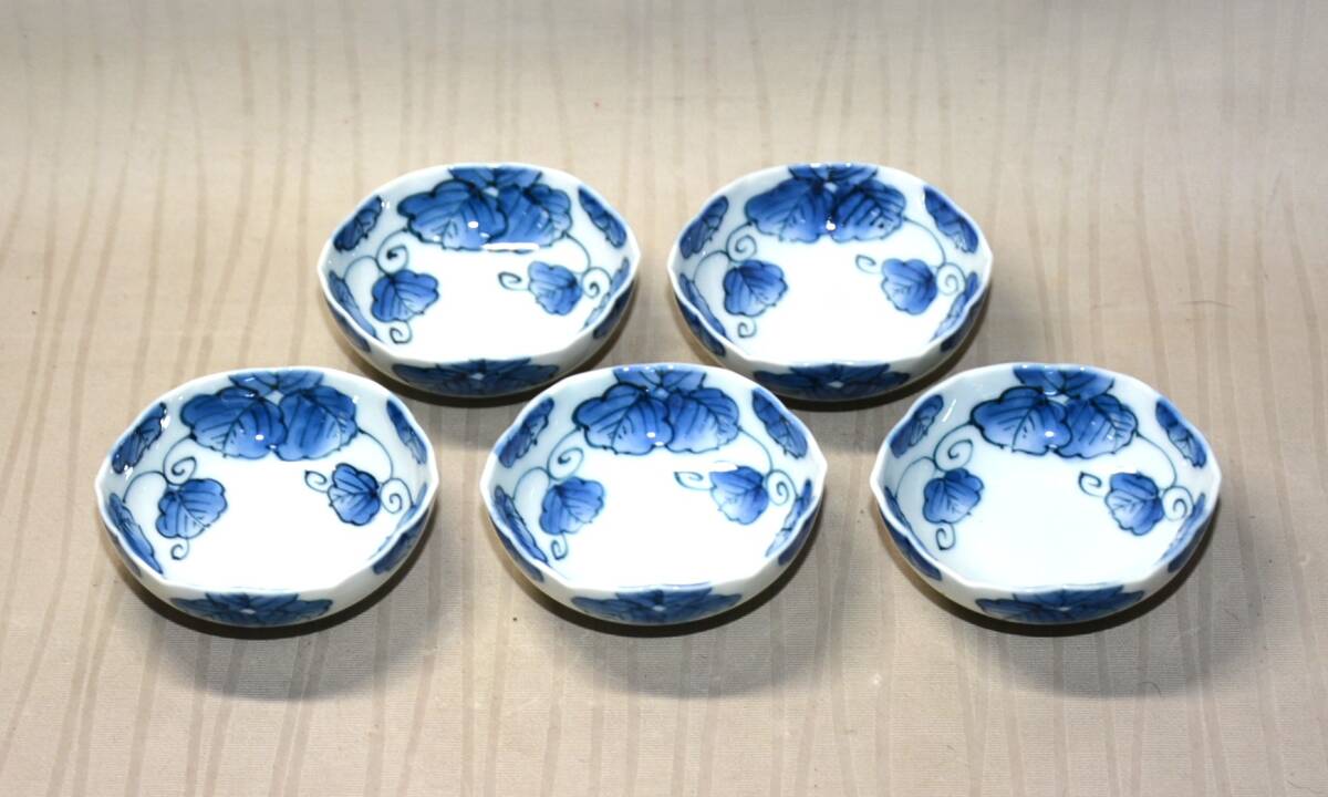 - 28◆初荷です ◆平戸焼 三川内焼 啓祥窯 染付蔦絵豆皿 5客 7.8cm ◆可愛い絵付けです 高級和食器 懐石 千代口 千代久