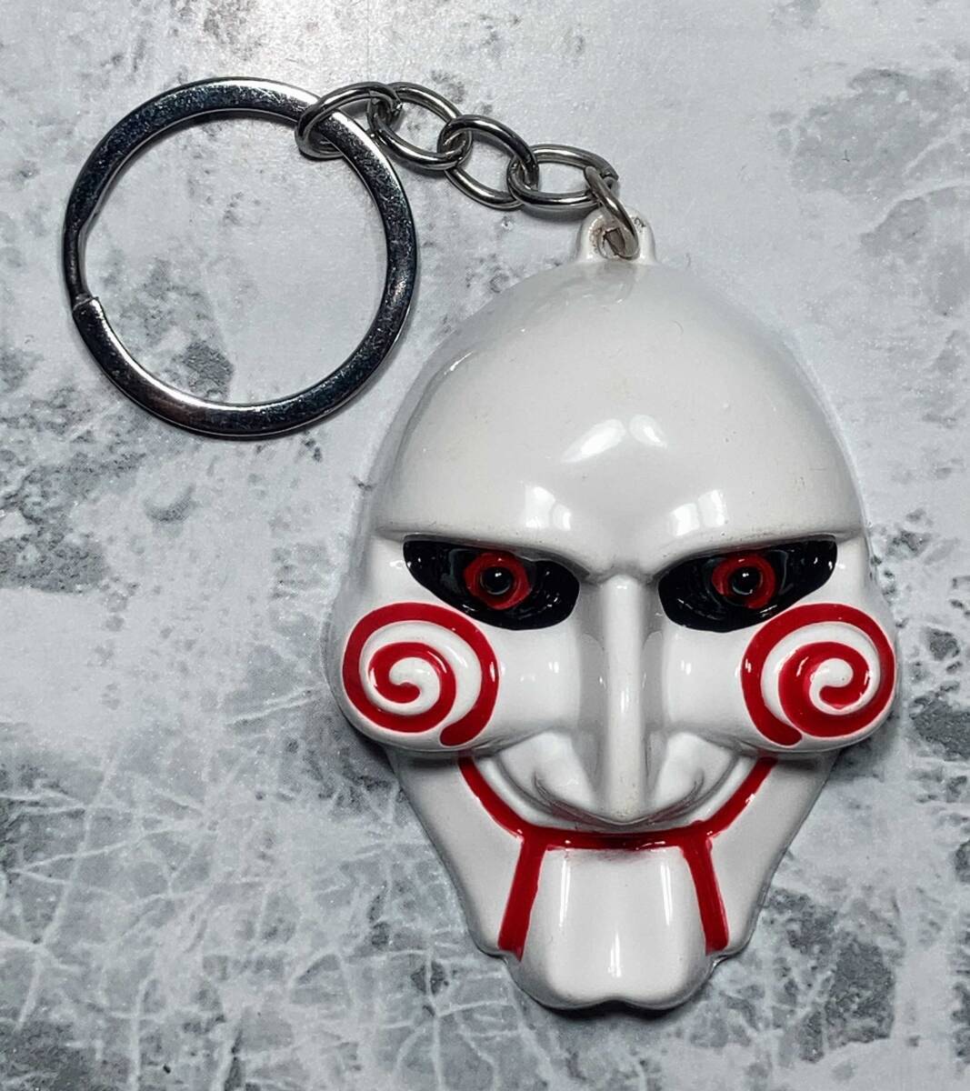 > ◆同梱発送可◆「SAW/ソウ ジグソウ/ジョン・クレイマー/ビリー人形 キーホルダー ホワイト」fire_sale 【タグ:映画、アクセサリー】