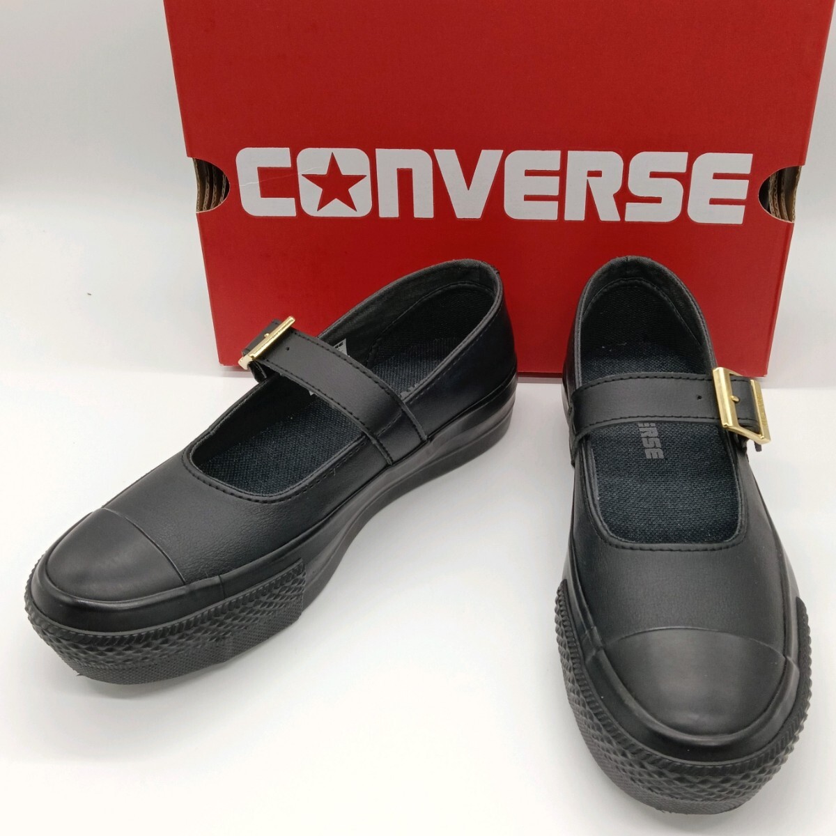 - 【美品 24年製 箱付き】コンバース CONVERSE ALL STAR PLTS MJ OX メリージェーン オールスター シンセティックレザー ベルト ブラック 黒
