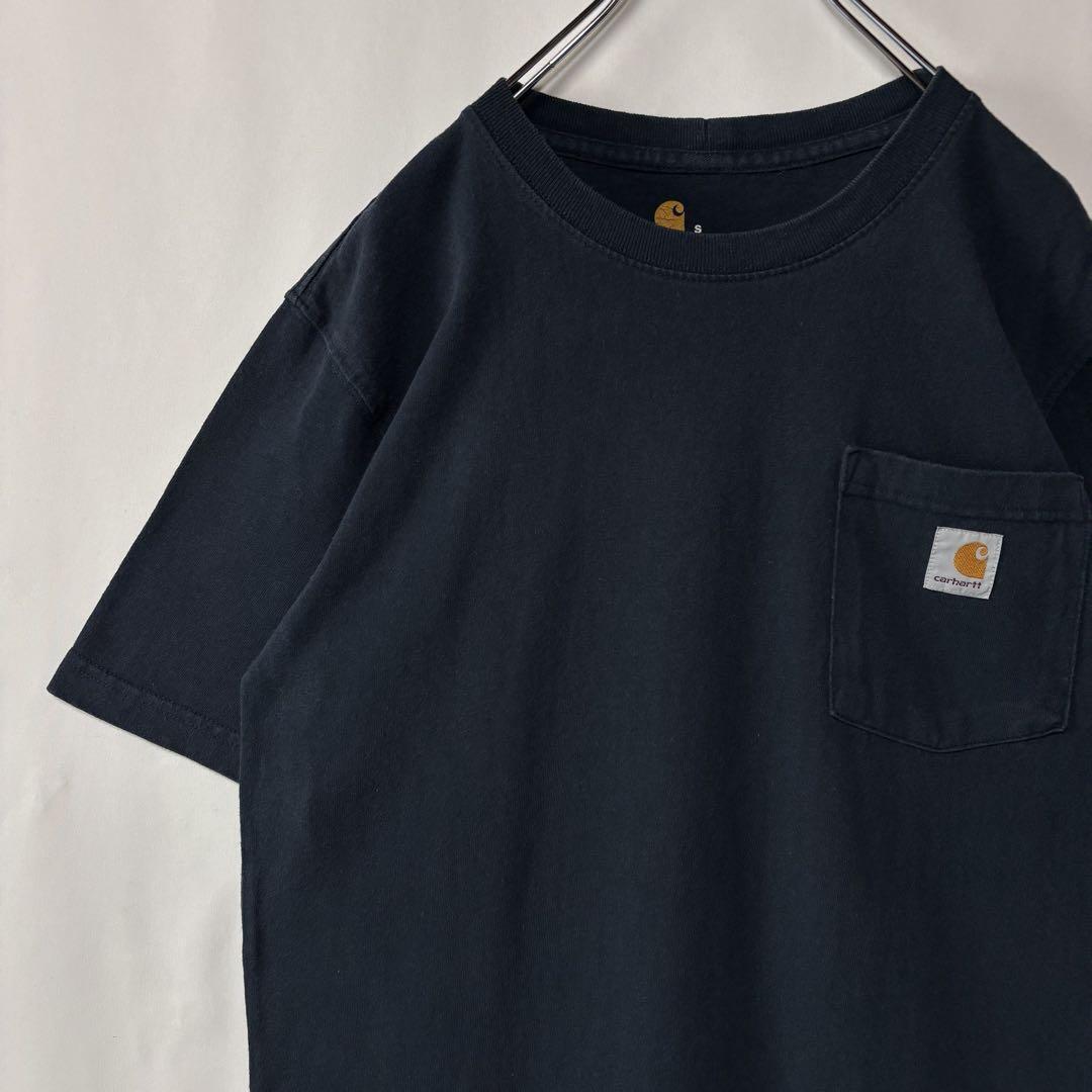 - カーハート ワンポイントロゴ ポケット付きTシャツ Sサイズ 古着 ブラック