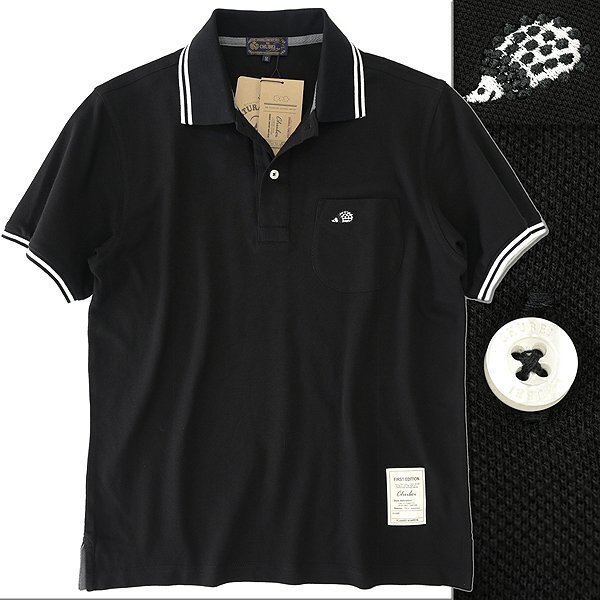 - 新品 チュウベイ ハリネズミ 刺繍 コットン 鹿の子 半袖 ポロシャツ M 黒 【CH1442092_99】 春夏 メンズ CHUBEI 綿 カノコ サマー