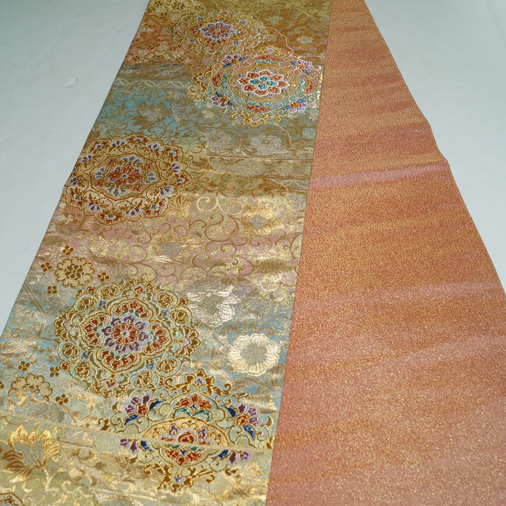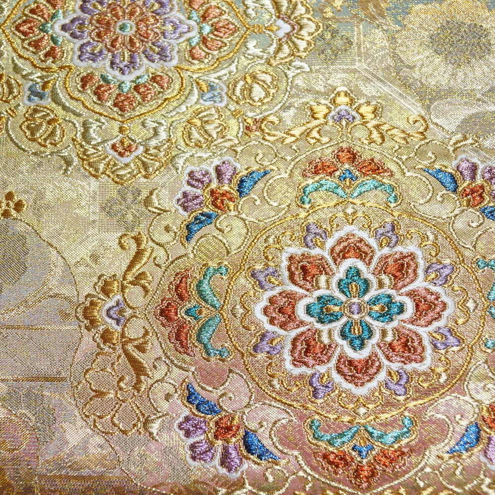 - 袋帯 輝煌綴 正倉院宝相文 金銀ラメ糸 六通柄 金・瀞金色系 刺繍 金箔 綴れ リサイクル 正絹 中古 リサイクル着物 帯 フォーマル 着物