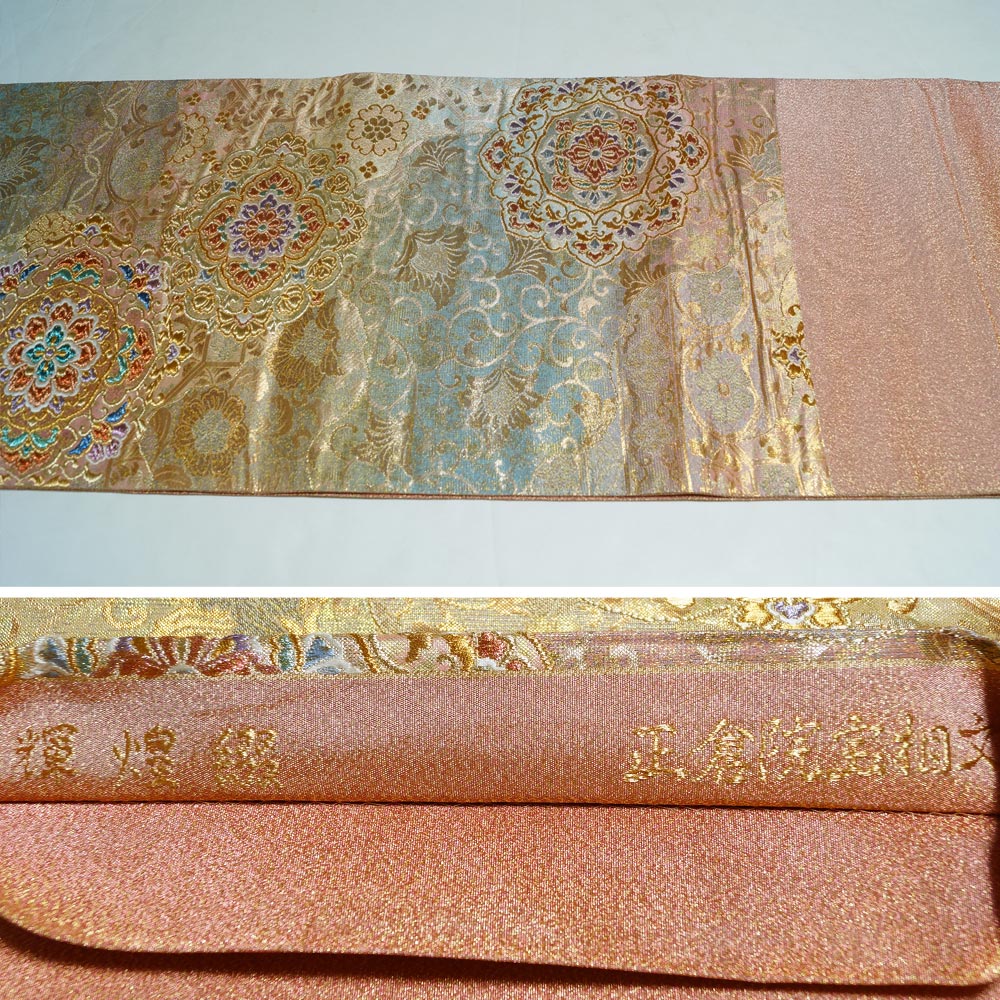 > 袋帯 輝煌綴 正倉院宝相文 金銀ラメ糸 六通柄 金・瀞金色系 刺繍 金箔 綴れ リサイクル 正絹 中古 リサイクル着物 帯 フォーマル 着物