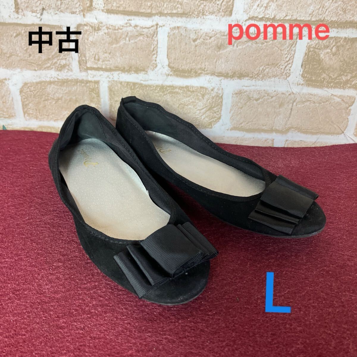 - 【売り切り!送料無料!】A-340 pomme !パンプス!黒!ブラック!L!おしゃれ!リボンパンプス!おしゃれ!ぺたんこ!中古!