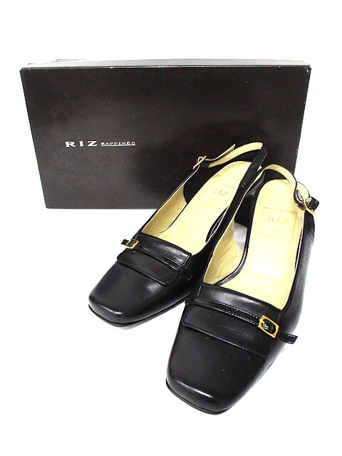 > 【9-59】RIZ RAFFINEE リズラフィーネ バックストラップ チャンキーヒール 22.5cm EE 黒 ブラック