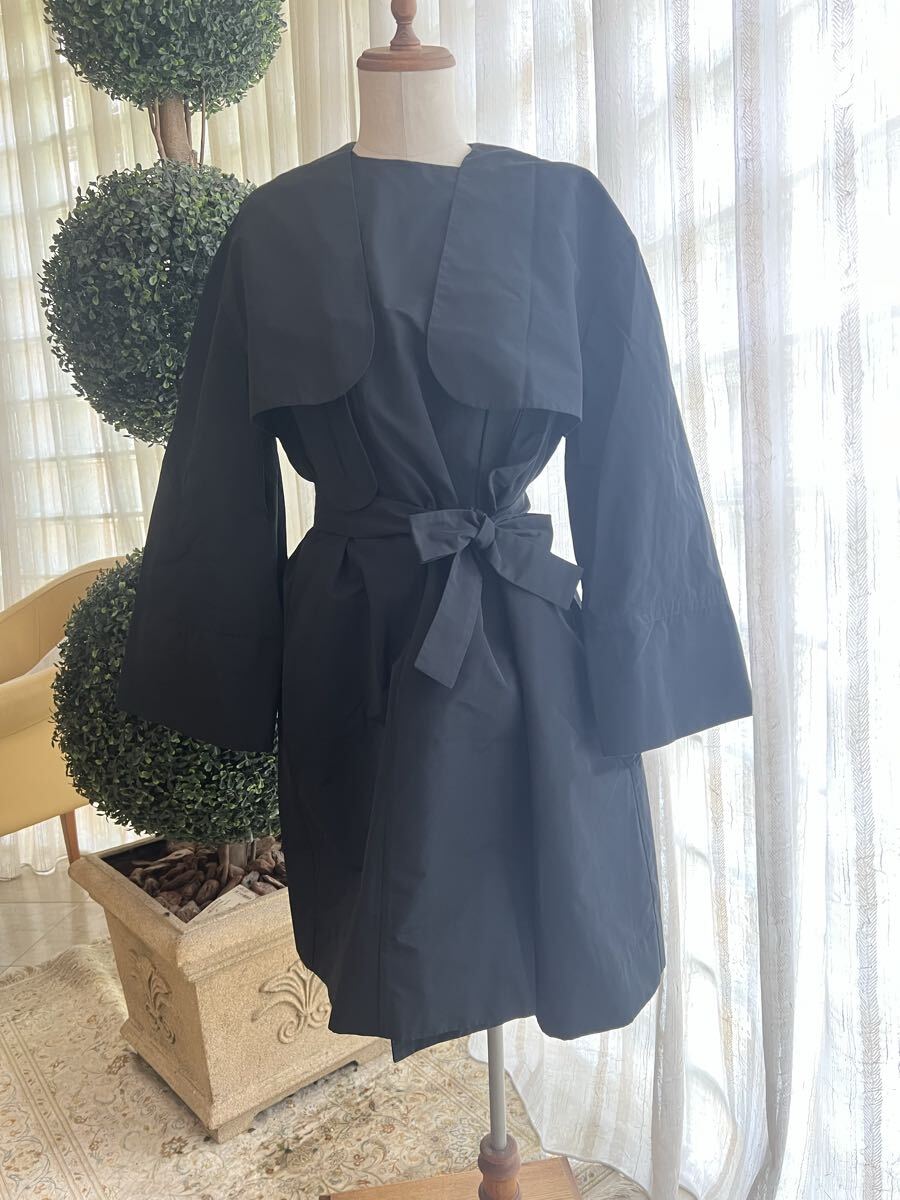 - カルヴェンCARVEN★黒 春秋 ノーカラー トレンチ コート 36 USED♪j