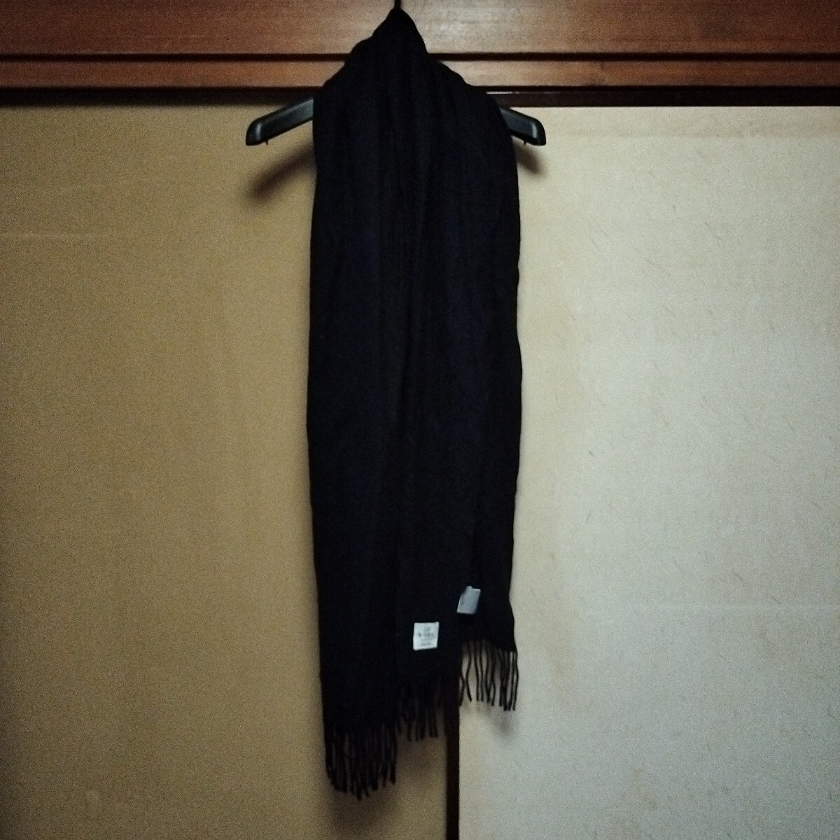 - グローバルワーク カシミヤ混マフラー黒ブラック フリンジ
