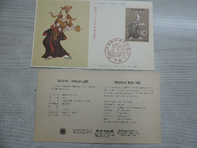 - ★花下遊楽図・狩野長信★ 切手趣味週間 初日カバー 昭和37年4月20日・京都 10円切手 切手文化部発行