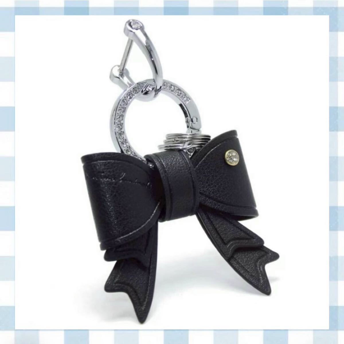 - キーチャーム リボン バッグチャーム ラインストーン キーホルダー ブラック