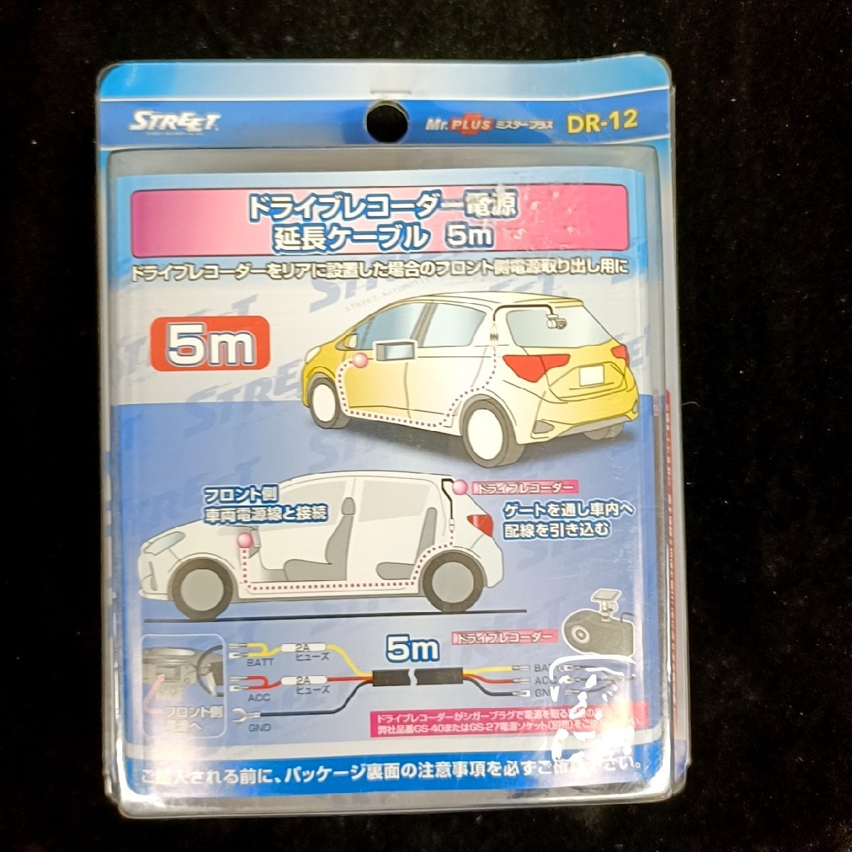 - STREET ミスタープラス DR-12 ドライブレコーダー電源延長ケーブル 5m【未使用】