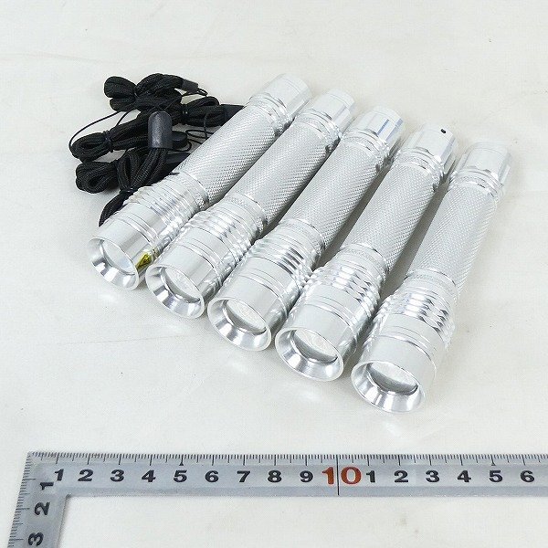 - LED フラッシュライト 5点セット 最大250ルーメン IPX4 照射距離約160m アルミ 懐中電灯 シルバー 防災 アウトドア 未使用■EX087s■