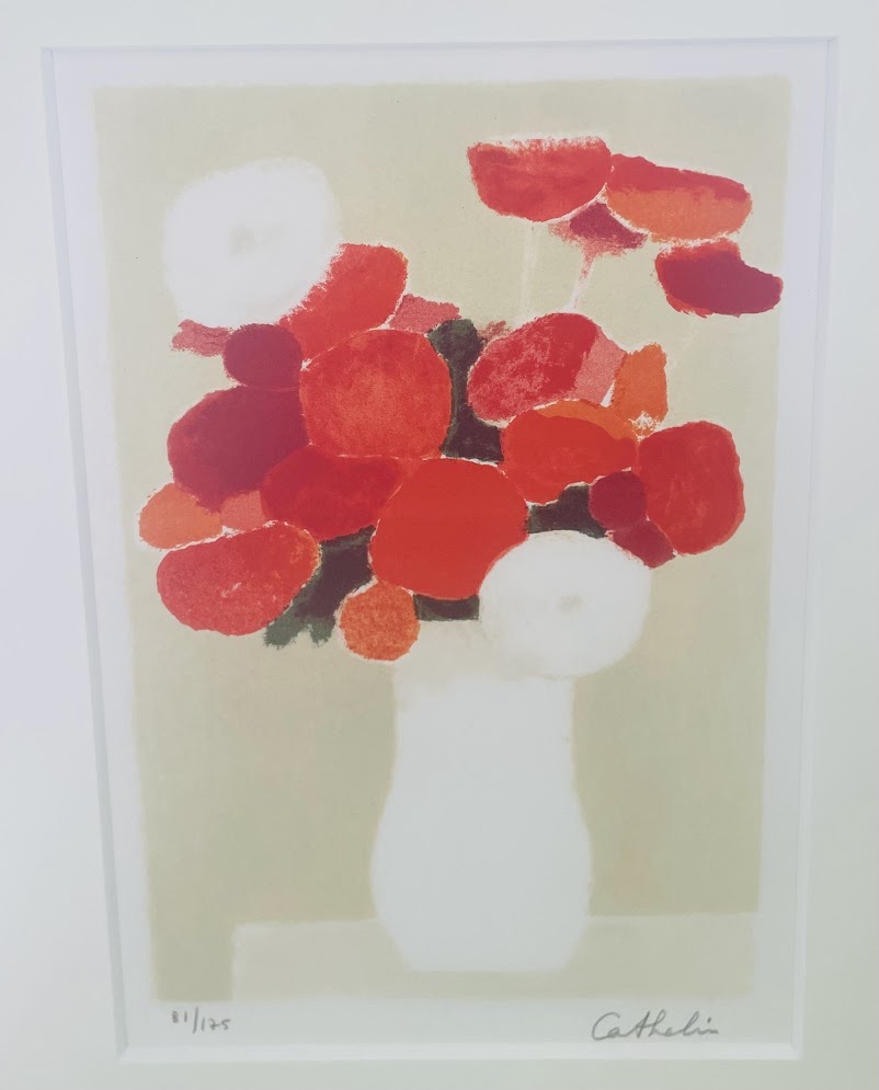 - [真作保証] ベルナール・カトラン 『赤い花束』リトグラフ フランス巨匠 直筆サイン ED81/175 花 抽象画 色彩の対比 R7-0151