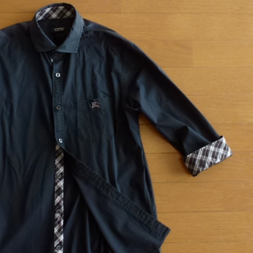- BURBERRY BLACKLABEL バーバリーブラックレーベル 七分袖シャツ ストレッチ ギンガムチェック ホース刺繍入り 即決あり!