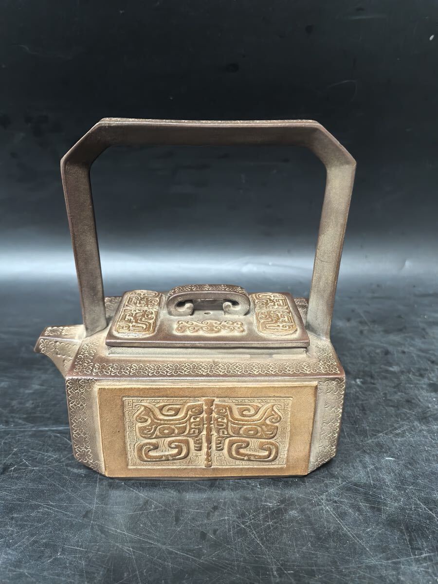 - 清時代 紫砂壷 煎茶道具 朱泥急須 饕餮紋 茶道具 時代物 茶器 古陶芸 在銘