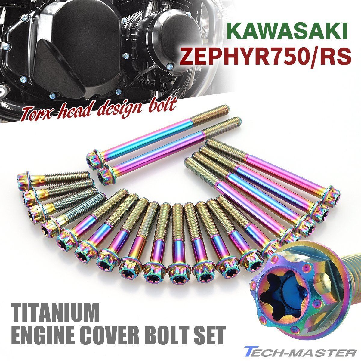 > ゼファー750 RS エンジンカバーボルト 20本セット チタン製 トルクスヘッド カワサキ車用 レインボーカラー JA8145