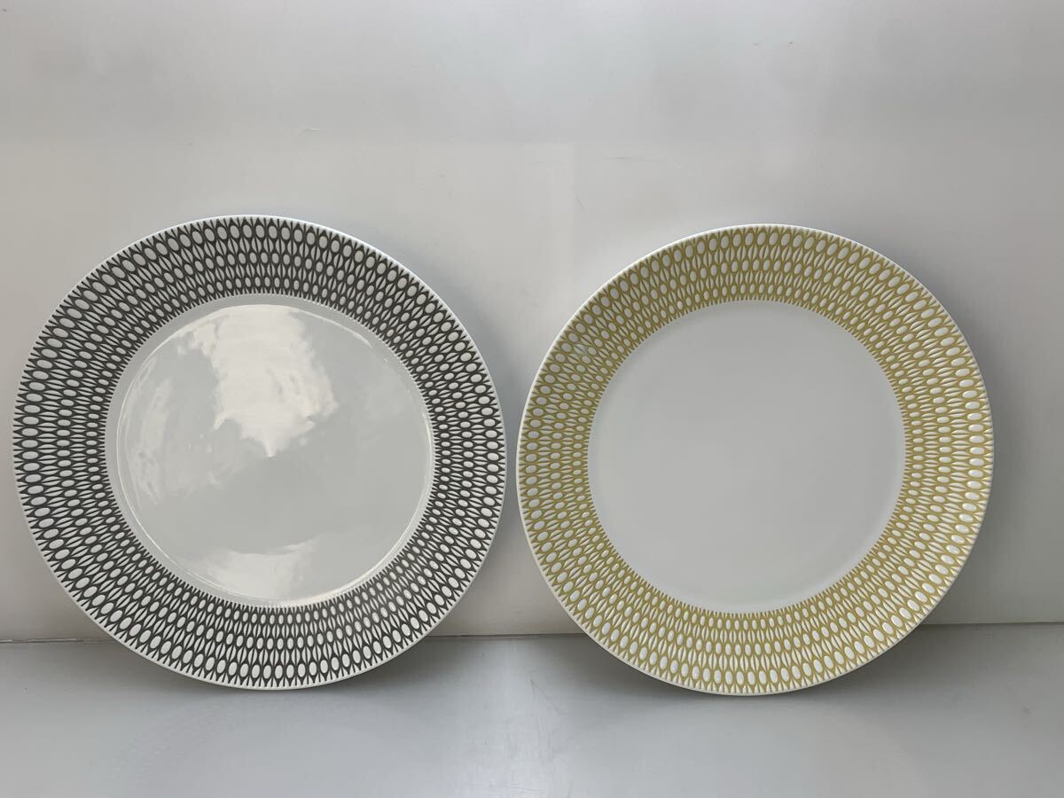 - H7-1-50909D 波佐見焼 NISHIYAMA 西山 デイジー 約25cm 高約2.7cm グレー 2枚