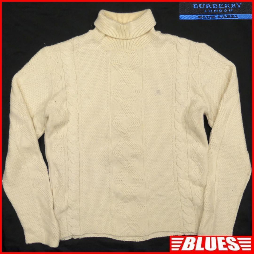 - 即決★BURBERRY BLUE LABEL★メンズM 廃版 タートルネック ニット セーター バーバリーブルーレーベル 白 ウール ナイト刺繍
