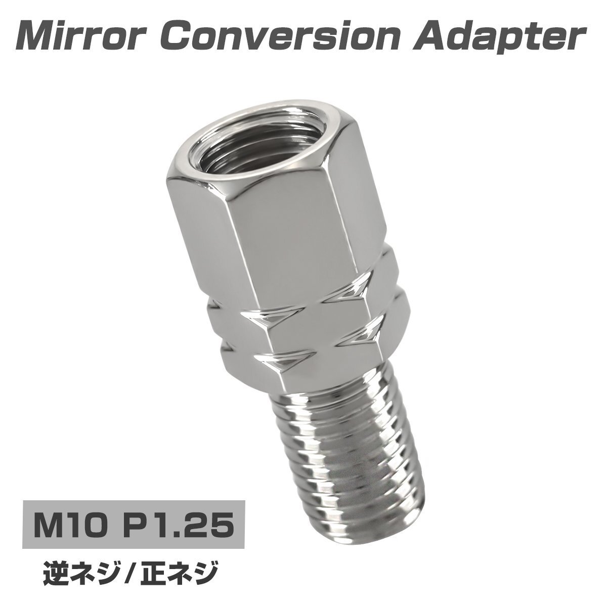 - ミラー 変換アダプター 18mm延長 車体側 M10正ネジ / ミラー側 M10逆ネジ P1.25 変換プラグ ステンレス シルバー 1個 TH0629