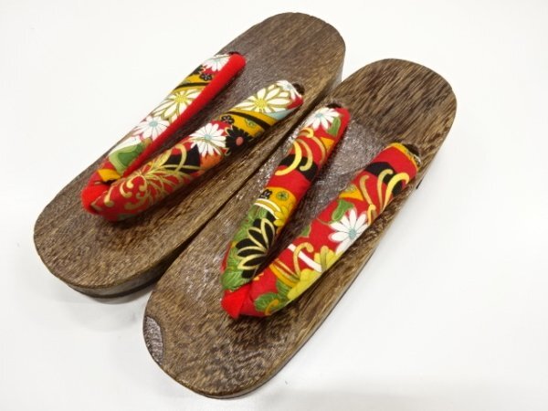 - ys7517437; 未使用品 花模様鼻緒 桐下駄(24センチ)【着】