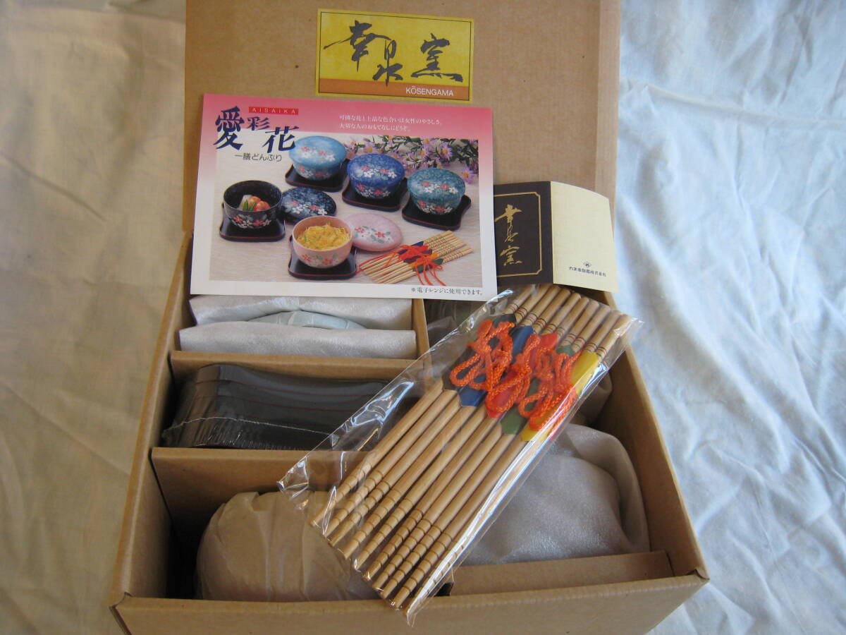 - ★未使用・保管品★「幸泉窯・愛彩花」美濃焼・多治見/一膳どんぶりセット ふた、受皿、お箸/5客