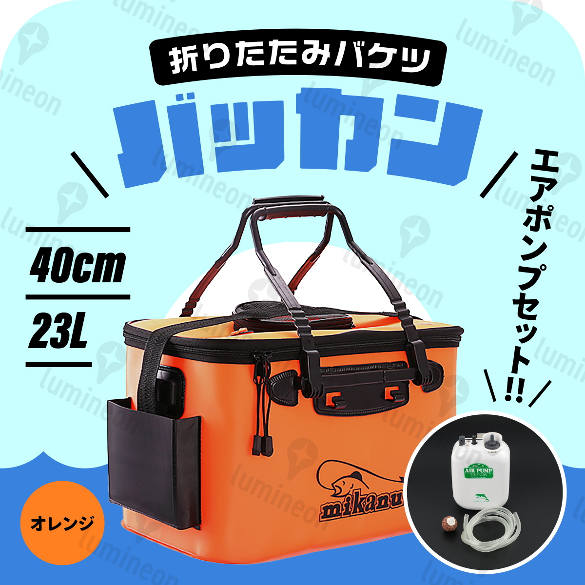 > バッカン 40cm 折りたたみ 釣り バケツ エアー ポンプ 付き エア フタ 水汲み バケツ 肩掛け ショルダー 袋 ホルダー 魚 大容量 g040dc 1