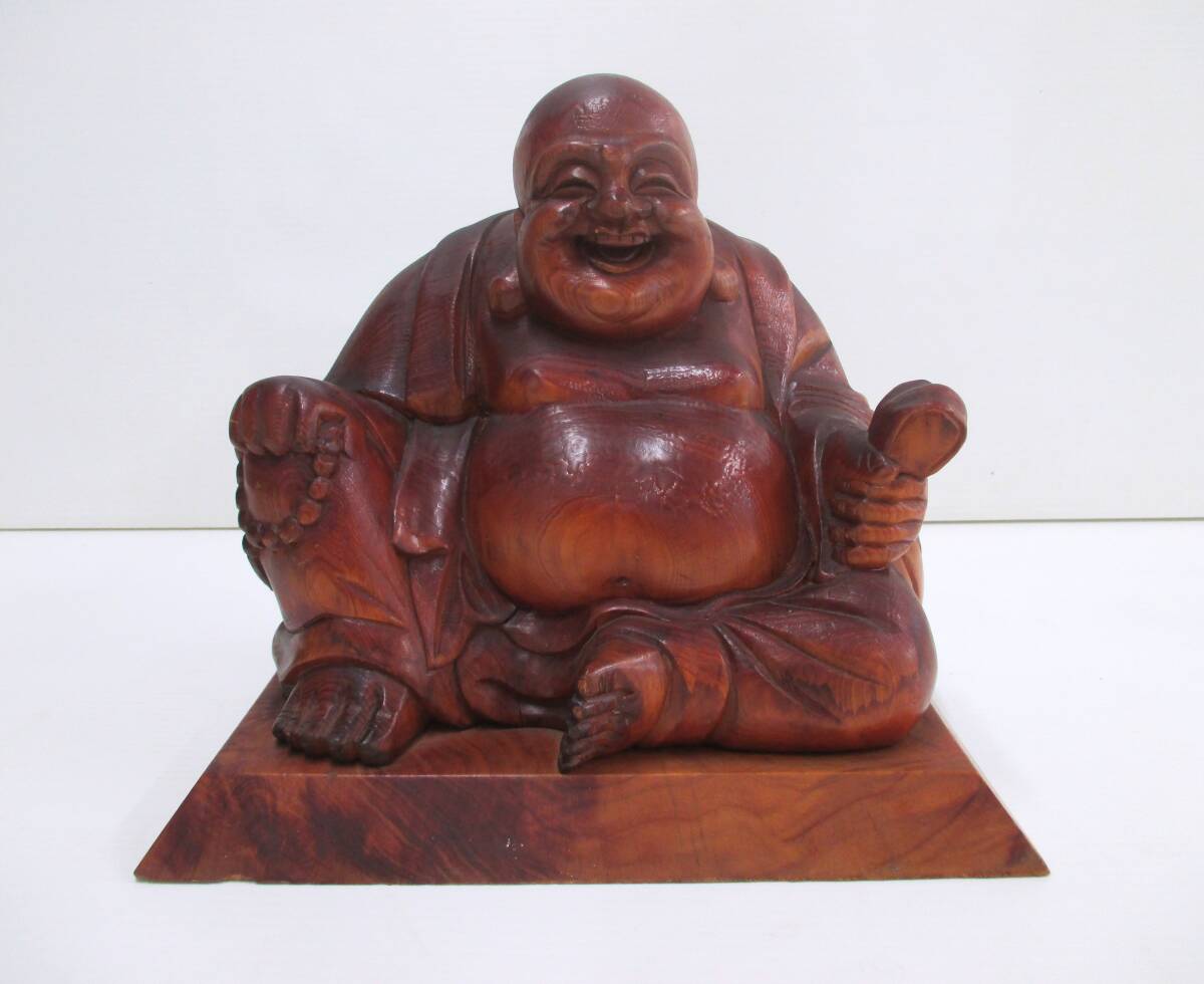 - 木彫り 布袋様 木製 1.8Kg 置物/縁起物/布袋尊/七福神/彫刻/オブジェ/商売繁盛★年代 作者不明