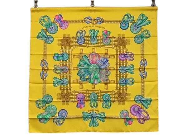 - エルメス スカーフ カレ90 シルク100% - LES RUBANS DU CHEVAL 馬のリボン飾り 大判【本物保証】