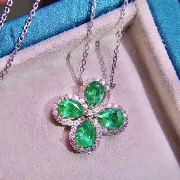 (証明書付き)925シルバー天然エメラルドペンダント、3x4mm、合計1カラット、妻へのギフト