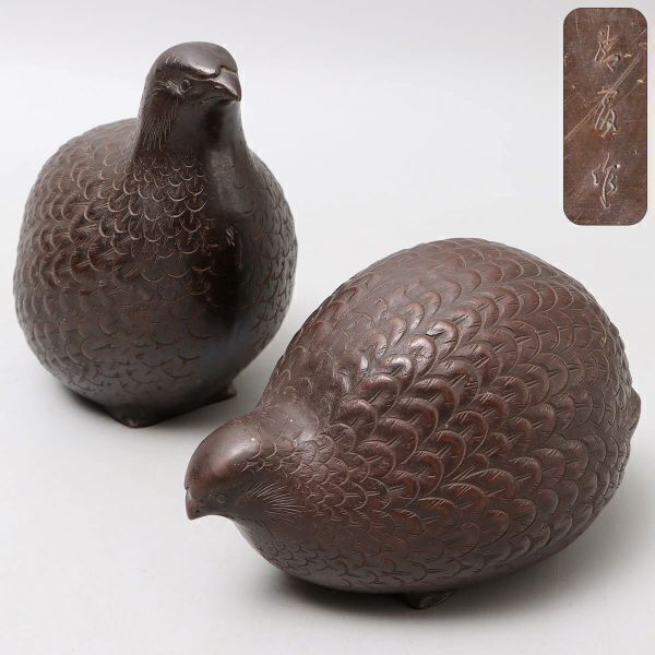 金工美術【清富作】鋳銅 鶉 一対 置物の出品です。