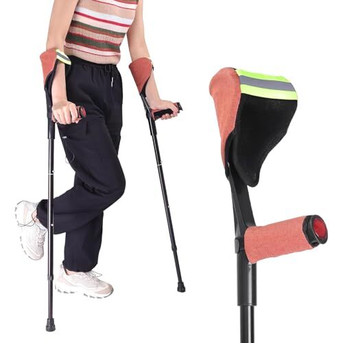 - クラッチ杖 松葉杖 折りたたみ杖 介護杖 2本 前腕支持型杖 取り外し可能 クッションカバー付き 高さ調整 10階段 歩