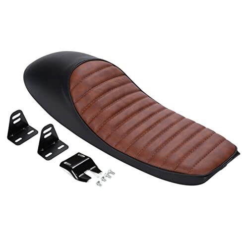 - スズキ ヤマハ バイクシート トラッカー バイク ロング シート SR400 TW200 SRV250 おしゃれ 黒×茶