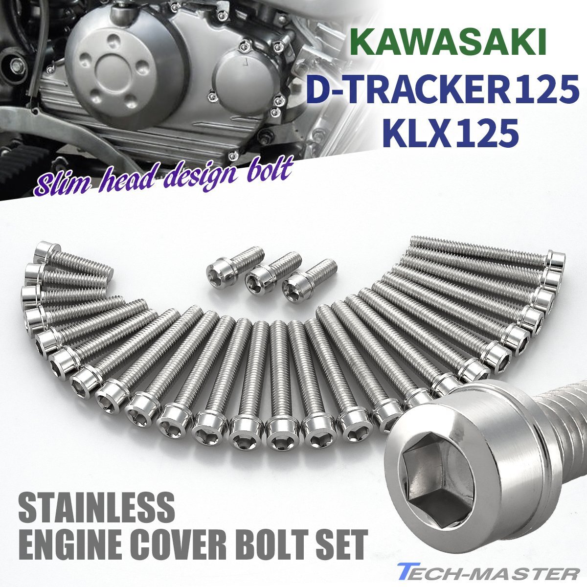 > Dトラッカー125 KLX125 エンジンカバー クランクケース ボルト 28本セット ステンレス製 スリムヘッド シルバーカラー TB8736