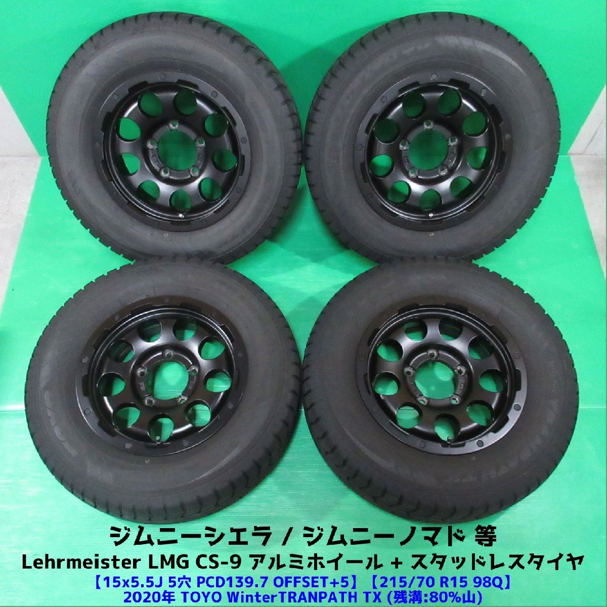 - ジムニーシエラ 215/70R15 バリ山スタッドレス 80%山 TOYO WinterTRANPATH TX 4本 5穴PCD139.7 5.5J +5 ジムニーノマド 中古新潟