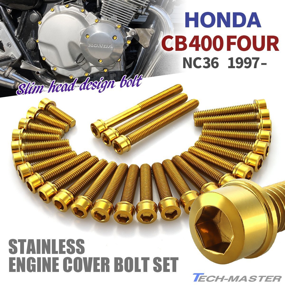 > CB400FOUR NC36 1997年~ 水冷 エンジンカバー クランクケース ボルト 28本セット ステンレス製 スリムヘッド ゴールドカラー TB12037