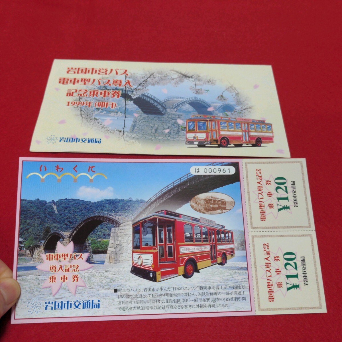 - 岩国市営バス 電車型バス導入 記念乗車券 1999年 卯月 岩国市交通局 記念券 記念切符