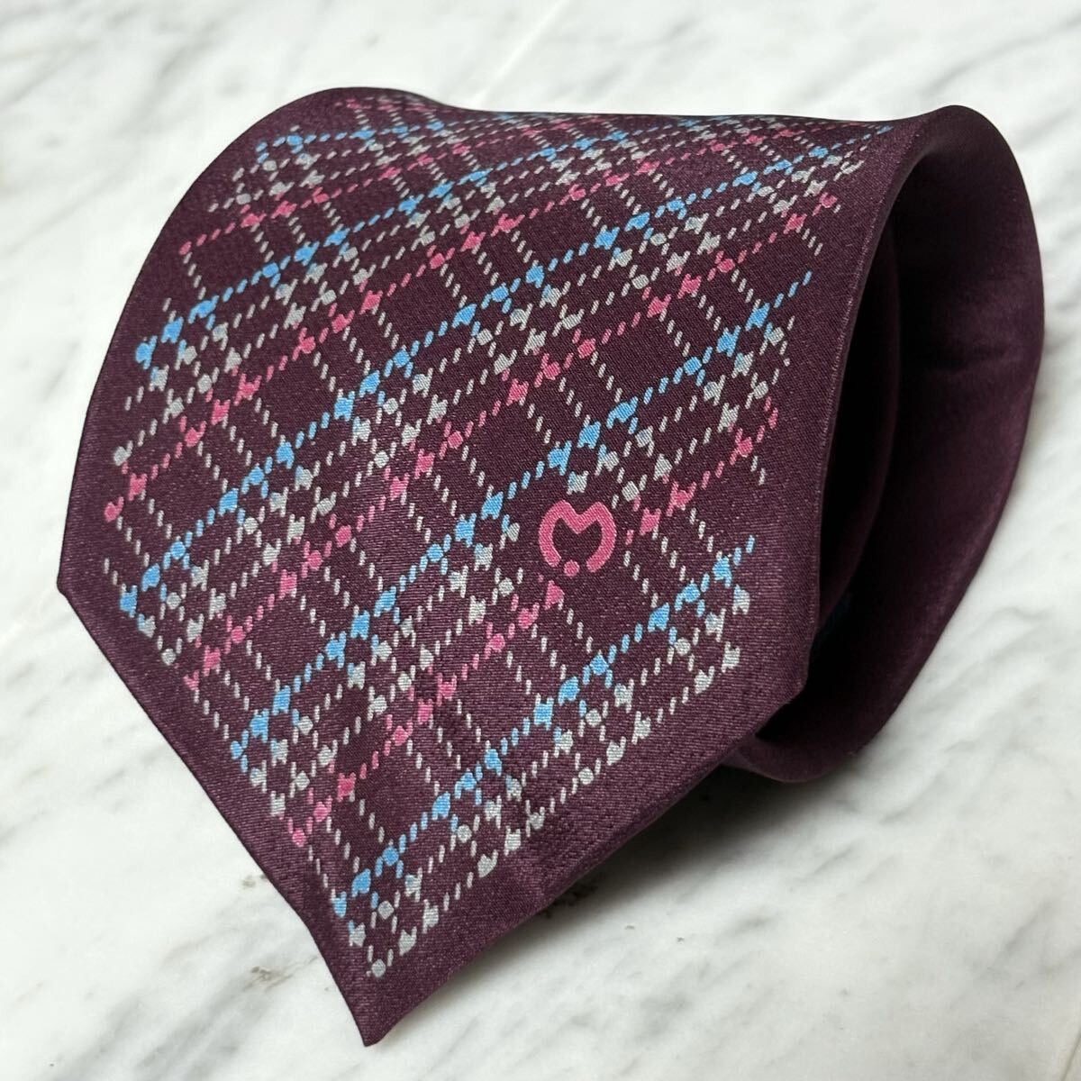 - 【美品】 999円~ ミラショーン ネクタイ レッド チェック柄 ロゴ柄 (R8)